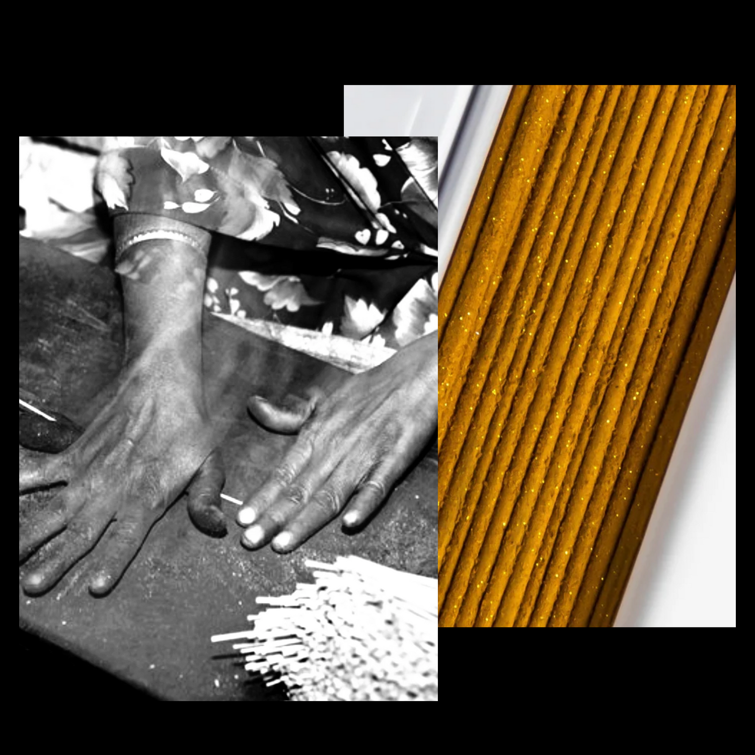 Élaborés tel un parfum avec ses notes de tête, de cœur et de fond, nos Encens sont confectionnés à Pondichéry, ville indienne imprégnée d'un héritage français, où la modernité de nos parfums se mêle au savoir-faire ancestral indien, pionnier en la matière, afin de garantir une qualité incomparable.